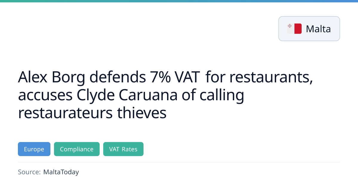 Malta opposition leader Alex Borg defended his proposal to cut VAT on restaurants and kiosks from 18% to 7%, arguing it would benefit around 3,000 catering businesses. Finance Minister Clyde Caruana opposed the measure, citing a €140 million cost that would match the 2024 tax cut and only benefit a small sector. Borg accused Caruana of branding restaurateurs as thieves.