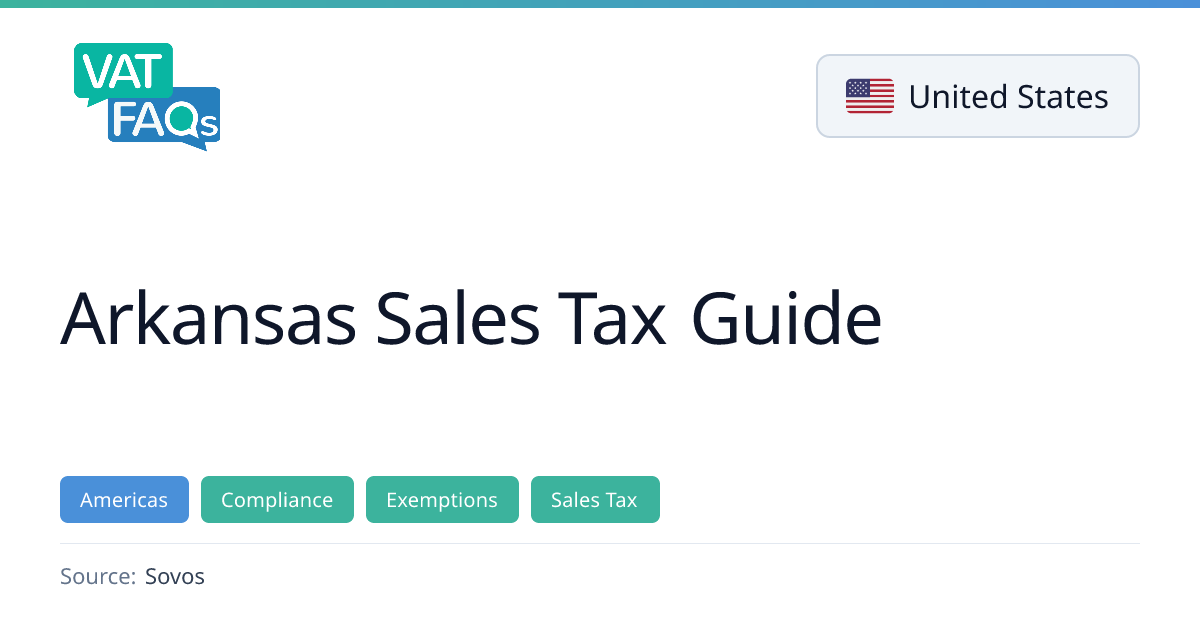 This guide outlines Arkansas’s statewide sales and use tax rate of 6.5%, economic nexus thresholds, prepayment obligations for high‑volume sellers, and the state’s participation in the Streamlined Sales Tax initiative. It also covers exemption certificates, filing methods, and the destination‑based sourcing rule.
