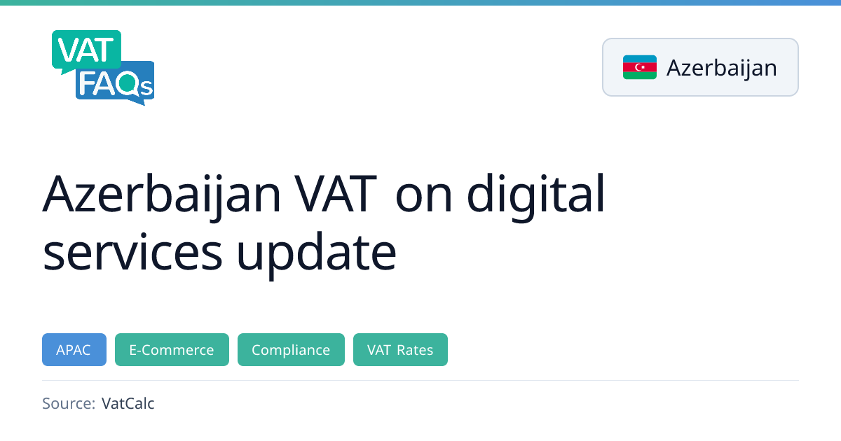 Azerbaijan’s Parliament has approved a new VAT regime for non‑resident digital service providers, requiring local registration, charging, collecting and remitting VAT from 1 January 2026. The change replaces the previous withholding‑tax or optional‑registration system, introduces a USD 10 000 annual sales threshold and ends the B2B reverse charge that had been in place since 2023. The current VAT rate on digital services remains 18%.