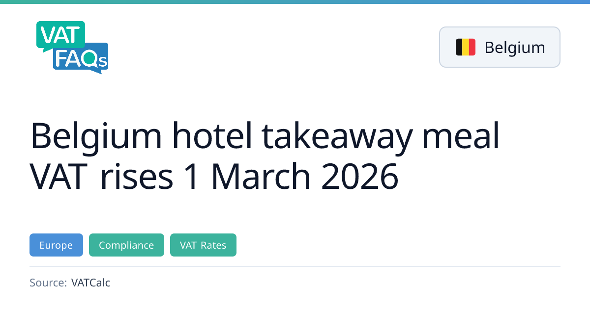Belgium will raise the VAT rate on hotel and campsite accommodation to 12% from 1 March 2026, while the rate on non‑alcoholic beverages served in hospitality venues will fall to 12% from 21%. Planned increases for takeaway food and cultural/sports events from 6% to 12% have been put on hold after a critical advisory opinion from the Council of State.