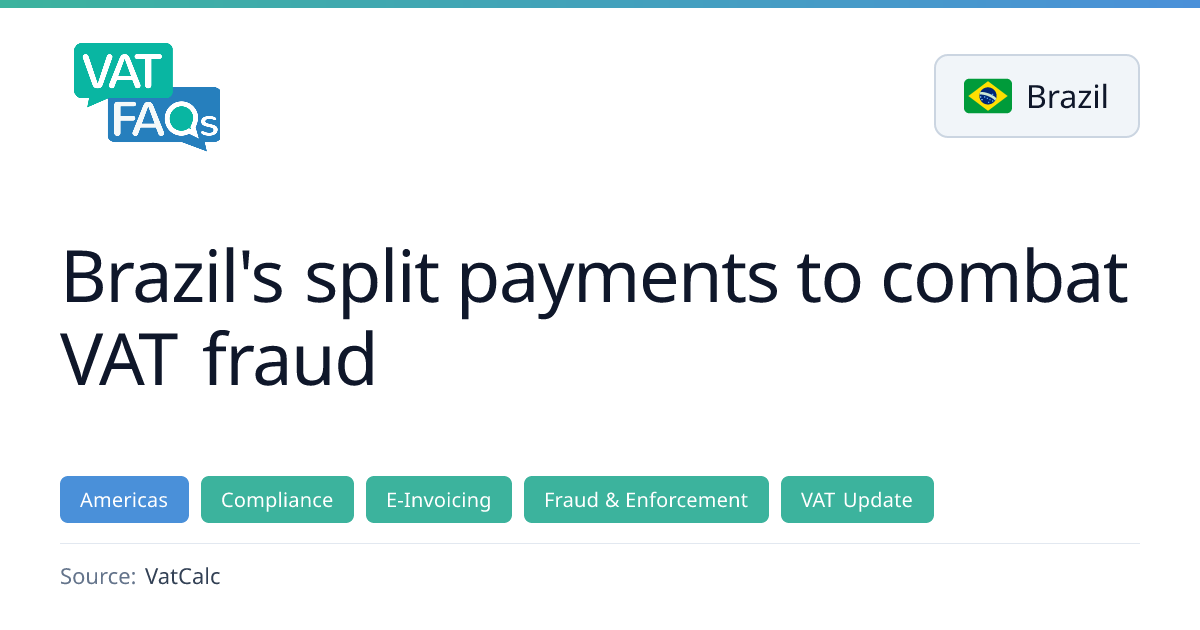 Brazil will roll out an intelligent split payment system for VAT starting 1 January 2026 to curb fraud. Pilot testing begins on 6 April 2026, with the production version following on 4 April. The mechanism requires payment service providers to verify supplier VAT credits before transferring funds, and buyers can only claim credits after the supplier has paid the tax.