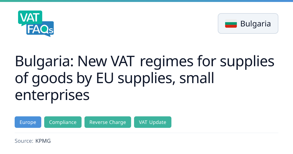 Bulgaria has amended its VAT Act to introduce new regimes for goods supplied with installation by EU suppliers and for small enterprises, effective 1 January 2026. The changes remove the reverse‑charge obligation for goods assembled or installed by EU‑based foreign suppliers and establish two special schemes for small businesses to align with the EU VAT Directive.