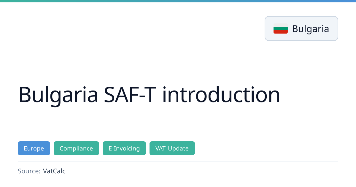 Bulgarian National Revenue Agency has issued new guidance amending SAF‑T technical documentation, introducing schema version 1.0.2 as the mandatory format for all SAF‑T submissions. The updated specifications take effect on 1 April 2026, with deadlines set in the Tax and Social Security Procedure Code. Businesses and software providers have until that date to align their systems with the new schema.