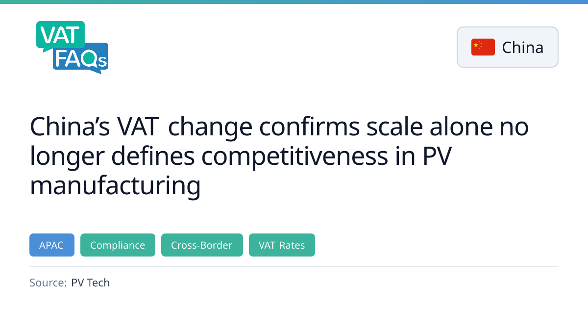 China has removed the 9% export VAT rebate on PV modules, marking a shift from price‑led subsidies to value‑based competition. The change is expected to raise costs for manufacturers and influence module pricing across markets. The policy reflects industry maturity and a focus on quality, efficiency, and long‑term bankability.