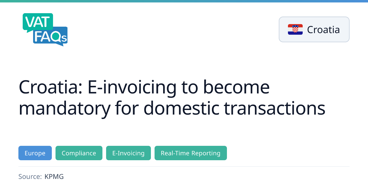 Croatia has made e-invoicing mandatory for B2B and B2C transactions for all VAT-registered businesses from 1 January 2026, with a second stage extending the requirement to non‑VAT entities on 1 January 2027. The mandate, known as “Fiscalization 2.0”, was implemented in two stages and follows the ordinance published on 17 December 2025. The Croatian Tax Authority has denied reports of system instability and will not grant a grace period.