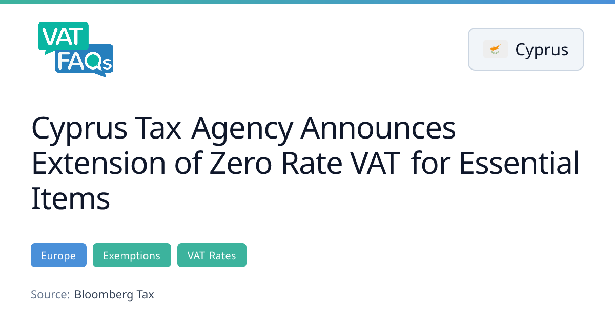 Cyprus has extended the zero percent VAT rate on a range of essential items until 31 December 2026. The extension, announced by the Cyprus Tax Department on 15 January 2026, covers baby milk, diapers, feminine hygiene products, and certain fresh fruits and vegetables.