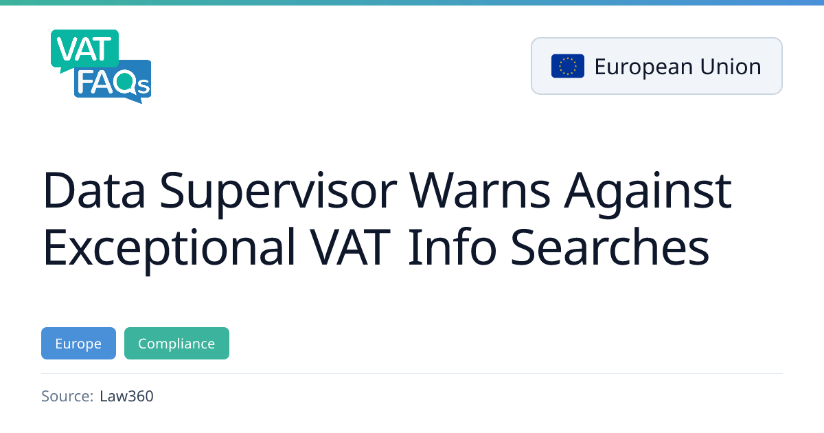 The European Union’s data supervisor cautions that the EU’s intensified crackdown on VAT fraud could blur the line between data cooperation and law enforcement, potentially undermining data protection. The warning highlights concerns about the balance between anti‑fraud measures and privacy safeguards.