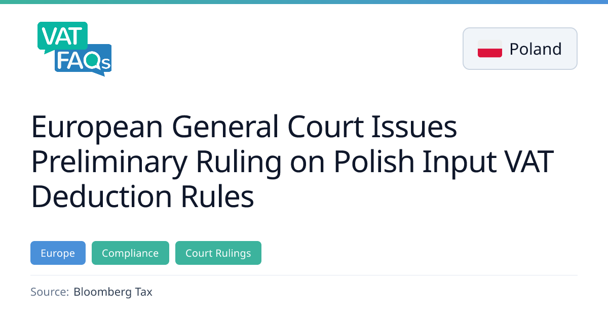 The European General Court issued a preliminary ruling on 11 February 2026 (Case No. T‑689/24) confirming that Polish input VAT can be deducted upon receipt of the invoice, not at the time of purchase. The decision, which cites EU Directive 2006/112/EC, applies to a Polish gas and electricity clearinghouse and clarifies the timing of the deduction right for Polish VAT authorities.