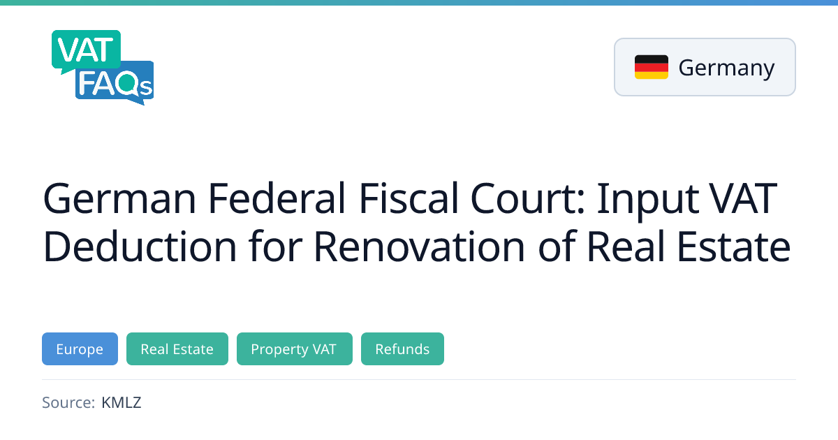 The German Federal Fiscal Court ruled in July 2025 that input VAT on renovation costs for a historic castle is deductible when the property is intended for taxable rental activities, regardless of whether the renovation was financed through grants or donations. The ruling confirms that profitability is not required for taxable person status.