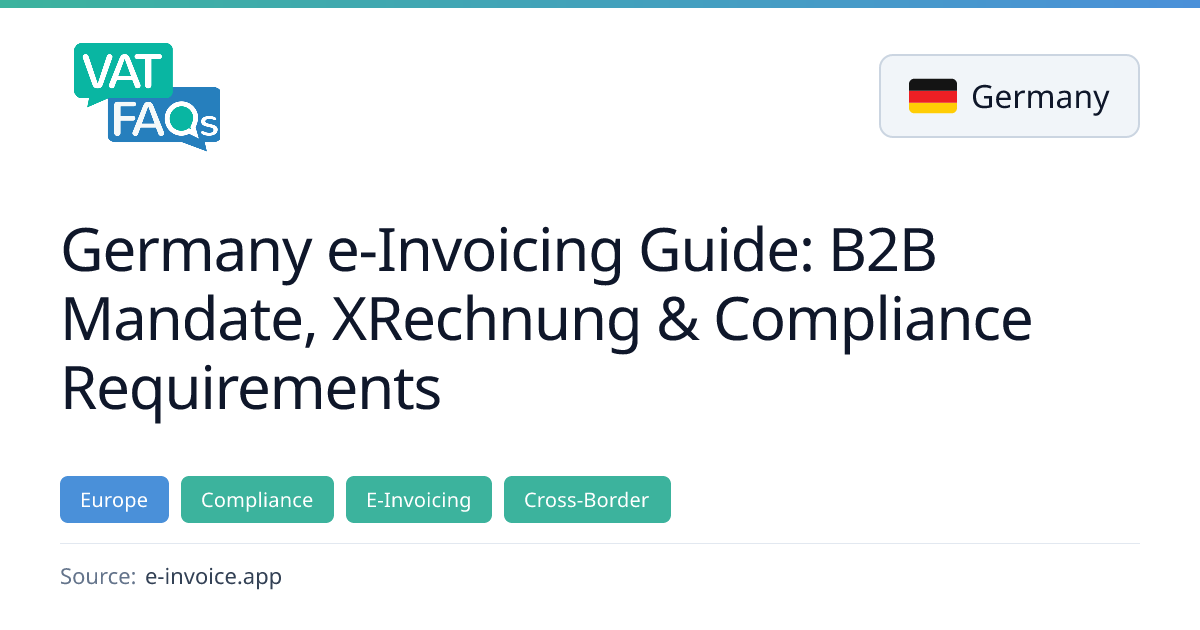 Germany’s national e‑invoicing mandate requires all businesses to receive structured invoices from January 2025 and to transmit them by revenue thresholds, with full coverage by January 2028. The system accepts XRechnung, ZUGFeRD and Peppol BIS formats, all EN 16931 compliant, and mandates 8‑year electronic archiving under GoBD. Non‑compliance can trigger VAT deduction denial, GoBD violations and administrative fines.