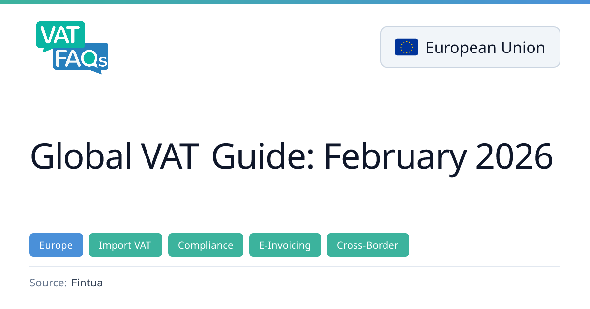 The February 2026 Global VAT Guide provides a concise overview of recent VAT and e‑invoicing developments across Europe, the EU, Japan and Mexico. Key updates include Belgium’s new place‑of‑supply rules for virtual events, Croatia’s extended VAT return deadline, the Czech Republic’s InstatEvo transition, a temporary €3 customs duty on low‑value goods in the EU, and changes to Belgium’s federal tax payment BIC code.
