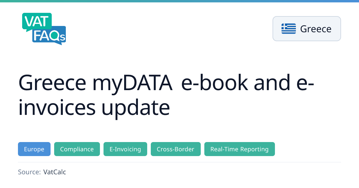 Greek authorities have postponed the mandatory B2B e‑invoicing go‑live to 2 March 2026, with a two‑month soft‑launch ending in early May. The first wave targets resident large businesses (turnover €1 million+) and covers domestic B2B supplies and exports outside the EU, while EU B2B remains optional. Penalties for non‑compliance include VAT‑based fines and fixed €500/€1,000 penalties, and businesses must submit a commencement declaration to AADE before issuing e‑invoices.