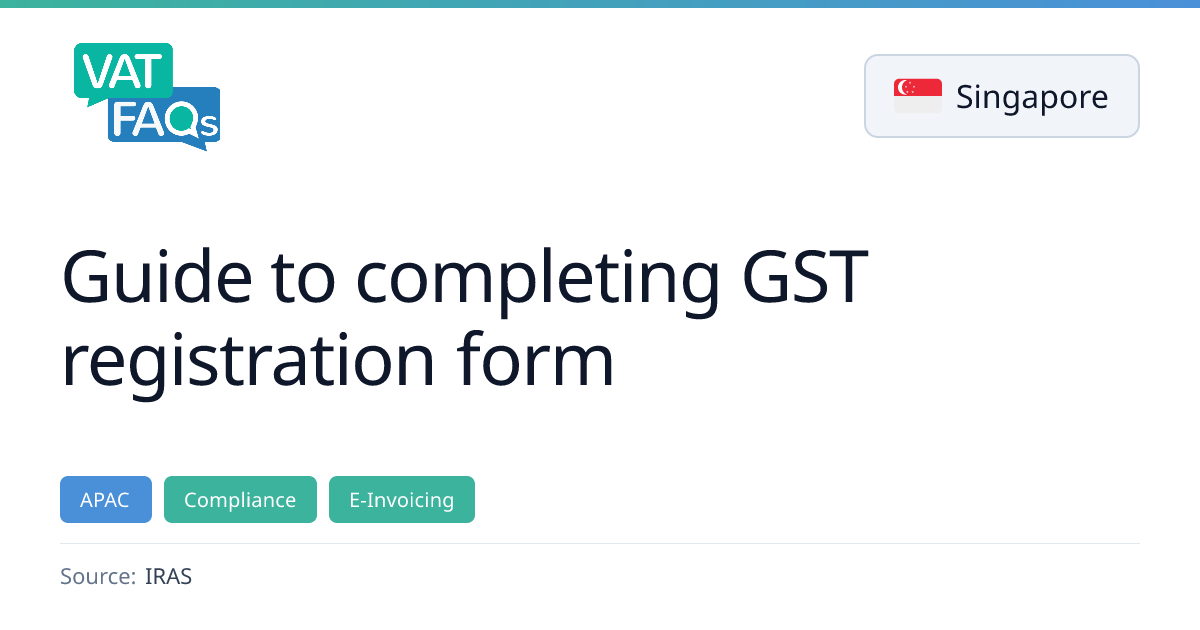 This IRAS guidance explains the steps and requirements for completing Singapore’s GST F1 registration form, including eligibility checks, mandatory e-learning, and technical prerequisites such as InvoiceNow readiness. It also outlines the 14‑day draft retention period and the prohibition on collecting GST before approval.