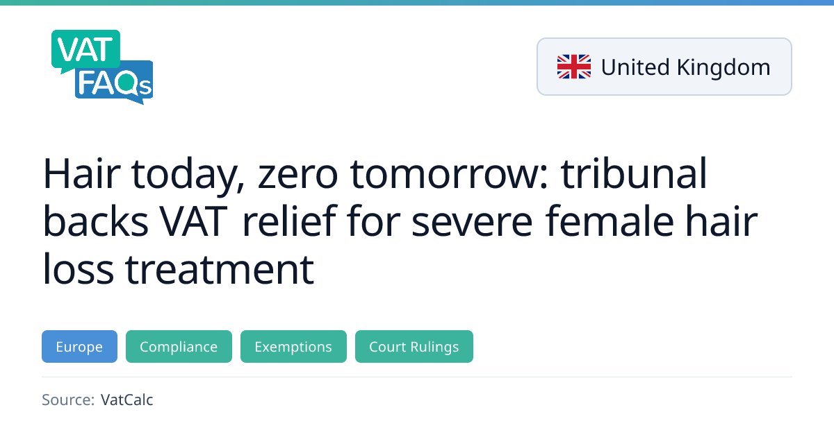 A UK Upper Tribunal decision allows a bespoke hair‑replacement system for severe female hair loss to be zero‑rated under Schedule 8 of the VAT Act 1994. The ruling expands the definition of disability to include social and psychological impacts and confirms that composite supplies that adapt goods can qualify for relief. The case clarifies that wigs and similar products are not automatically treated the same, opening new zero‑rating opportunities for adaptive products.