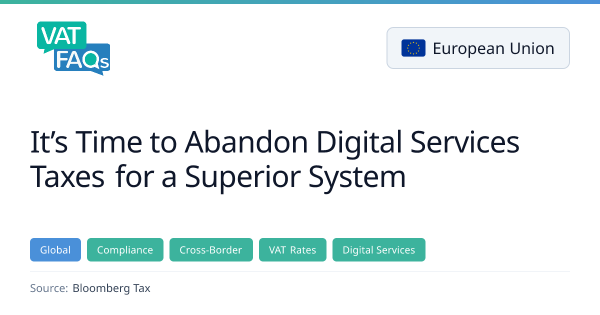 Bloomberg Tax argues that digital services taxes (DSTs) are ineffective and distort the digital economy, citing low revenue and compliance burdens. The article highlights that several countries—including Canada, India, Malaysia, and France—have moved away from DSTs or are considering alternatives, and it advocates shifting to a VAT framework for digital services.