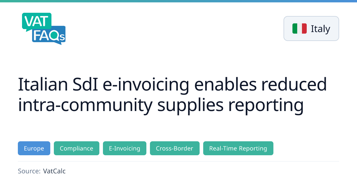 Italy has raised the Intrastat acquisitions reporting threshold from €350,000 to €2 million for VAT‑registered businesses, effective 25 February 2026 for transactions in January 2026. The change, announced in Act No. 84415, keeps the INTRA‑2 bis form unchanged and is enabled by the country’s e‑invoicing platform and EU data‑exchange mechanisms.