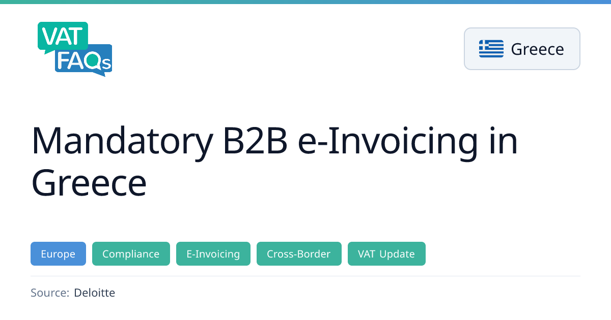 Greece will gradually enforce mandatory B2B e‑invoicing, starting 2 February 2026 for high‑revenue firms and 1 October 2026 for all other entities. The new rules cover all B2B transactions, sales to non‑EU entities (excluding retail) and public‑sector contracts, requiring use of the IAPR’s Timologio platform. Businesses should prepare early to comply with the new invoicing framework.