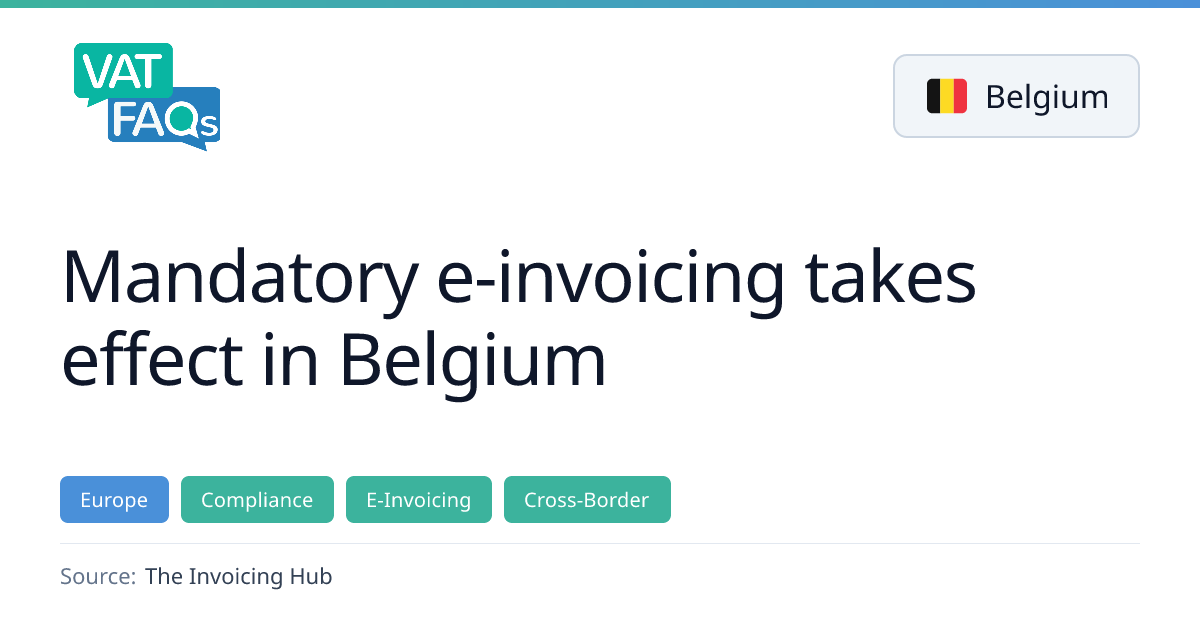 Belgium has enforced its e‑invoicing mandate effective 1 January 2026, requiring all companies to transmit invoices electronically via the Peppol network. A three‑month grace period allows firms to comply without penalties, while coverage rates vary across regions. Companies must also prepare for future e‑reporting obligations in 2028 and the ViDA directive.