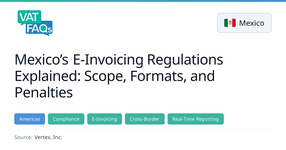 Mexico’s e‑invoicing regime, governed by the CFDI XML format (Anexo 20, version 4.0), applies universally to all taxpayers and covers B2B, B2C, and B2G transactions with no turnover threshold. The 2026 tax reform tightens authenticity checks, expands SAT enforcement powers, and imposes fines of 5–10 % of invoice value for non‑compliance.