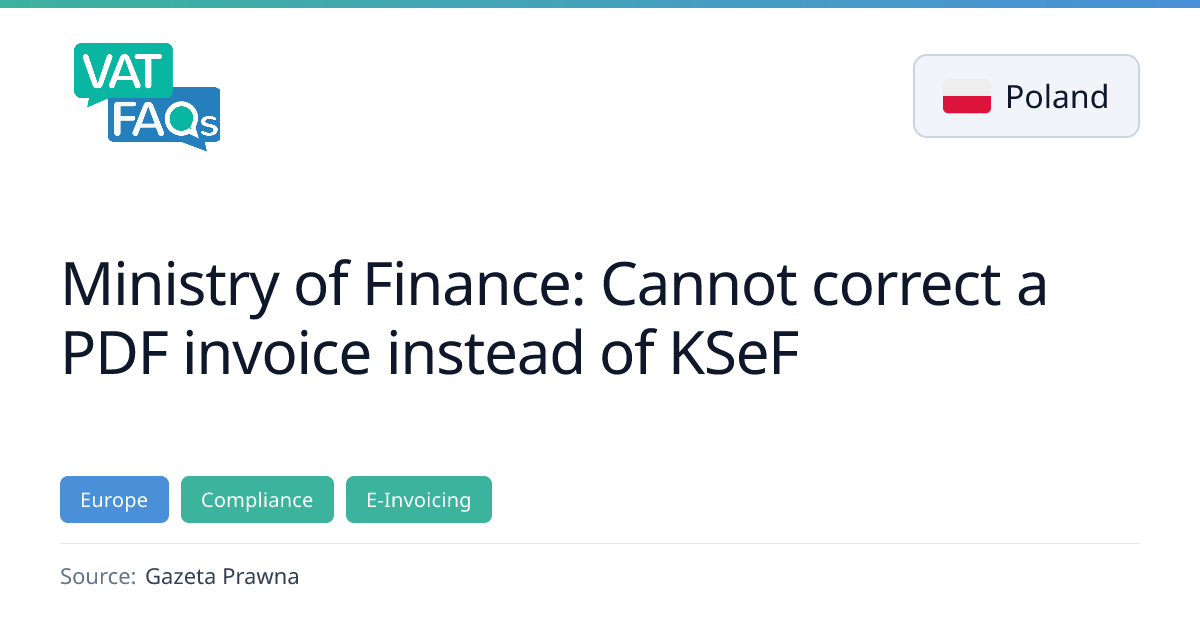 The Polish Ministry of Finance clarified that invoices issued in PDF format cannot be corrected once the mandatory KSeF system becomes effective in February 2026. There will be no reversal or sanctions until 2027, and companies should use the transition period to establish internal processes.
