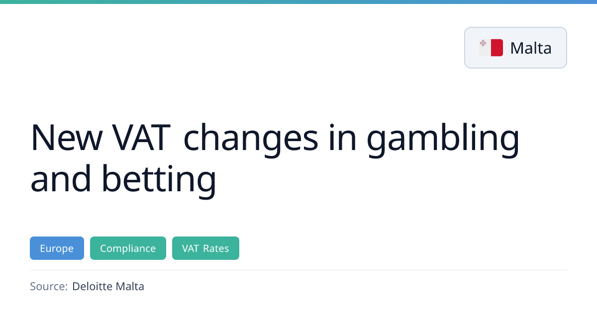 Malta's tax authority has issued new VAT guidelines for gambling and betting, effective 1 October 2026. The guidelines narrow the VAT exemption to low‑risk games, occasional junket events, and in‑venue sports betting, while treating most operators—including sports betting, live casino, and B2B providers—as taxable. Operators must review pricing, accounting, and billing systems to comply with the new regime.