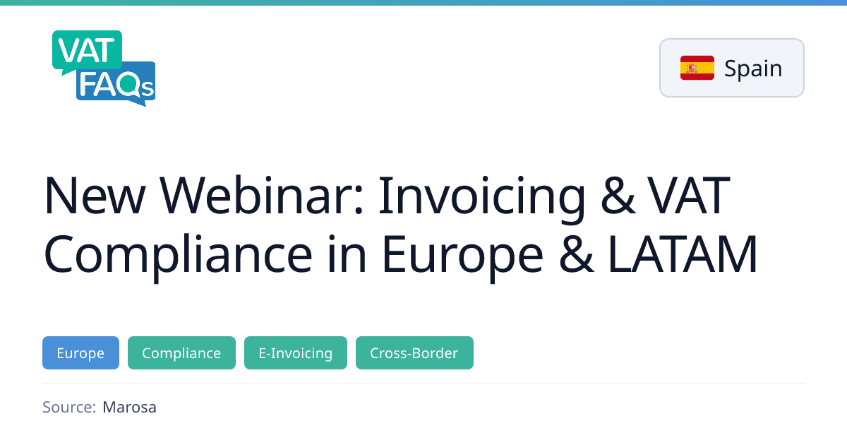 Marosa announces a webinar on 28 January 2026 covering invoicing and VAT compliance across Europe and Latin America, focusing on regulatory developments up to 2030. The session will feature experts Alexia García, Matt Ayton, and Daniela Lavin, and will provide guidance on integrating invoicing and VAT compliance for businesses operating in both regions.