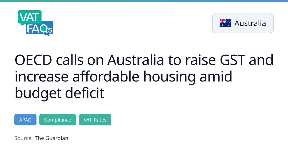 The OECD has renewed its call for Australia to broaden and potentially raise the GST to improve fiscal sustainability. It recommends expanding the tax base and considering a rate increase above the current 10%, possibly up to 15% if paired with income‑tax cuts, and estimates a 1.6% boost to output over ten years. The recommendation comes ahead of the May federal budget and follows a mid‑year budget update that confirmed persistent deficits.