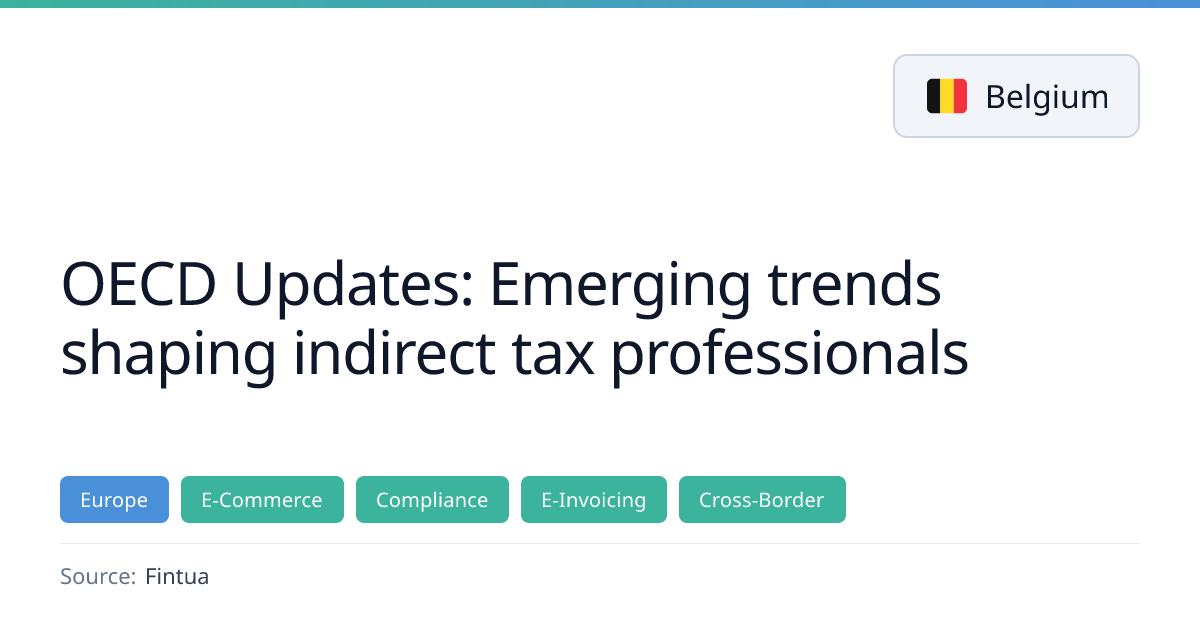 The Fintua blog post discusses OECD's latest updates on indirect tax, highlighting the shift toward real‑time, data‑driven administration, e‑invoicing, and digital reporting across jurisdictions. It covers the rollout of e‑invoicing and B2C digital services in EU countries, the UAE's expansion to non‑resident entities, and the development of the DCTR toolkit. The article emphasizes collaboration between businesses and tax authorities and the role of AI in tax compliance.