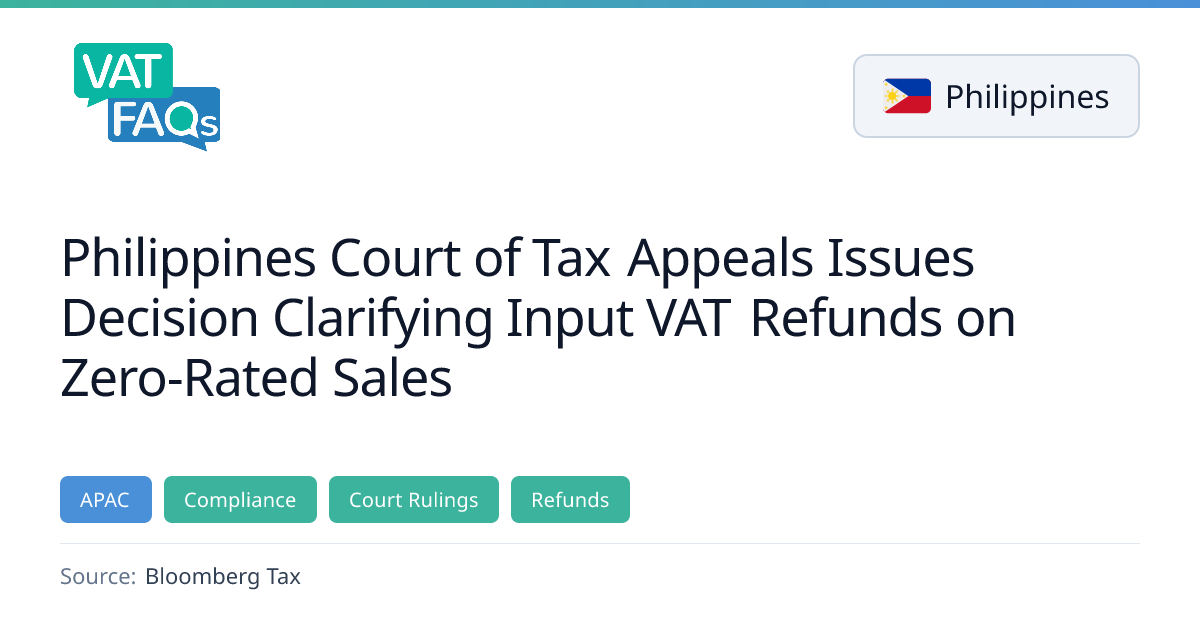 The Philippine Court of Tax Appeals issued a decision (CTA EB No. 2951) on Jan. 16, 2026 clarifying the treatment of unutilized input VAT refunds on zero‑rated export sales. The court partially granted a refund claim by a corporation engaged in export sales, after the Commissioner of Internal Revenue denied the request for lack of proof that service recipients were not doing business in the Philippines.