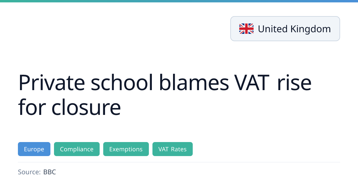 Trinity Christian School in Reading closed after 13 years, citing the removal of VAT exemption on private school fees and rising business rates as the main reasons. The UK government introduced VAT on private school fees from 1 January 2025 at the standard 20% rate, expected to raise £1.8 billion a year by 2029/30. The school’s business rates increased to £35,000 from about £5,000, and its application for discretionary relief was denied.