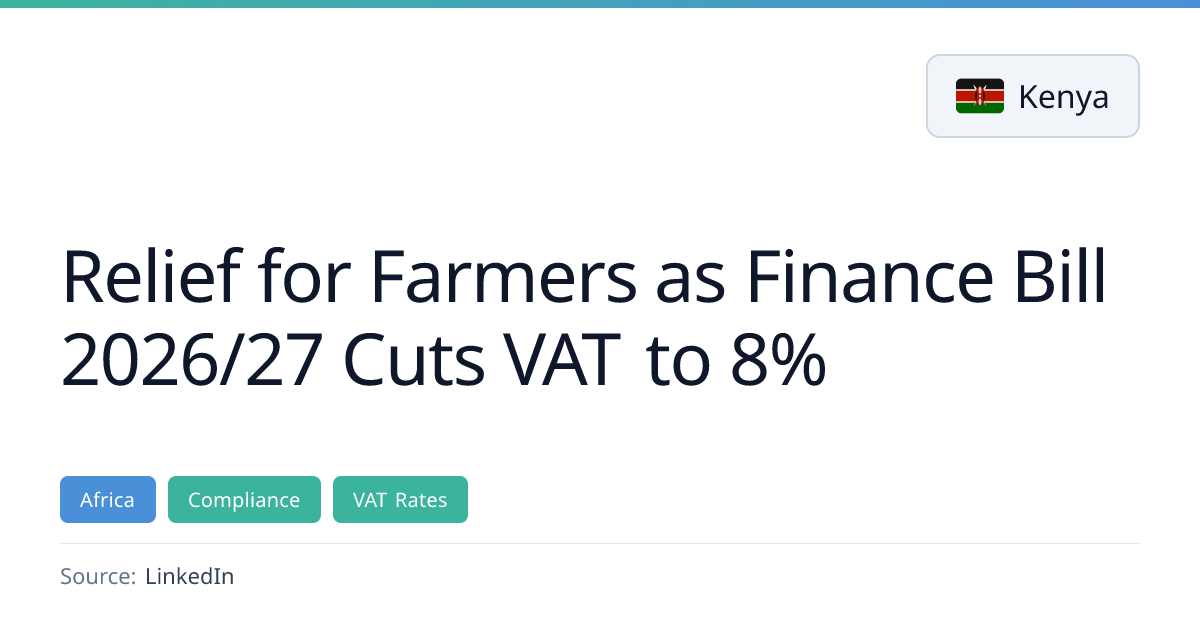 Relief for Farmers as Finance Bill 2026/27 Cuts VAT to 8% | VATfaqs.com