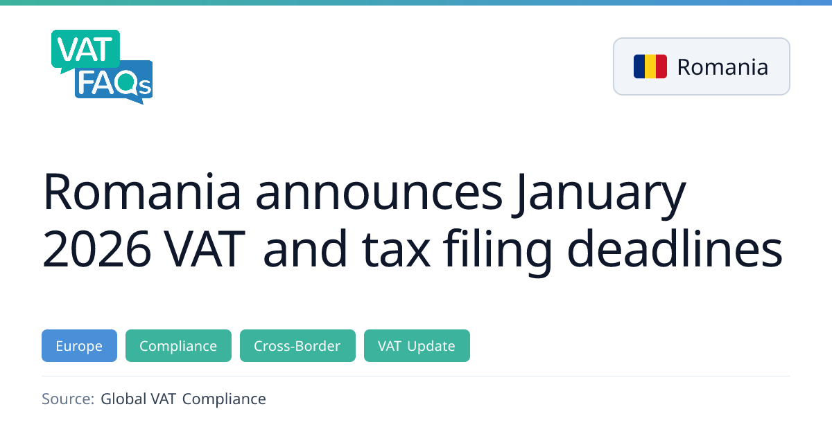 The Romanian National Agency for Fiscal Administration (ANAF) has set key filing dates for January 2026, covering VAT registrations, returns, social contributions, withholding tax, and One‑Stop‑Shop (OSS) submissions. The deadlines vary by taxpayer type and transaction profile, with specific dates for quarterly VAT taxpayers, registration changes, and December 2025 related filings.