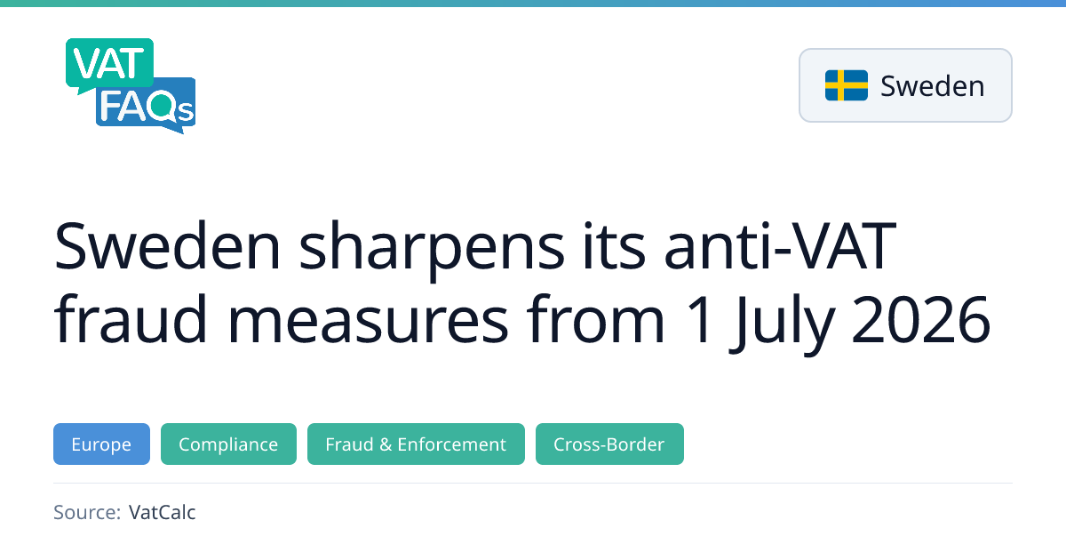 Sweden has introduced a new bill to strengthen anti‑VAT fraud enforcement, effective 1 July 2026. The legislation expands the Swedish Tax Agency’s powers, including enhanced scrutiny at registration, refusal or deregistration of VAT registrations, invalidation of Swedish VAT numbers in the EU VIES system, and blocking excess input VAT repayments. These measures aim to disrupt missing‑trader, carousel, and repayment fraud across the EU.