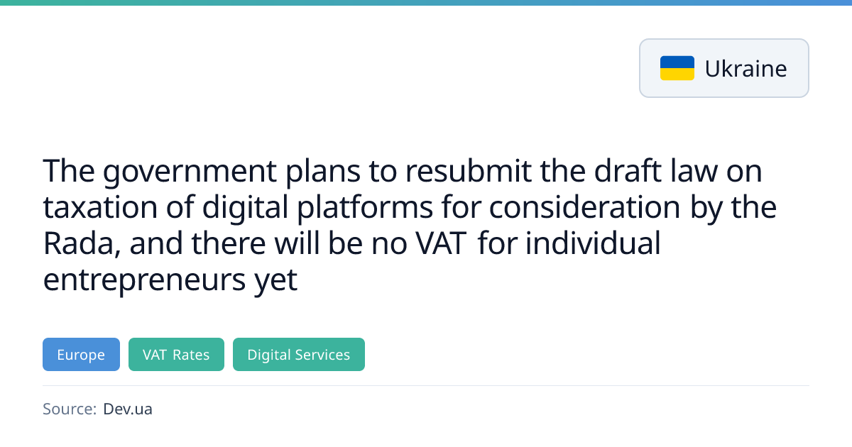 Ukraine’s Ministry of Finance unveiled a draft law that will overhaul VAT rules for individual entrepreneurs, digital platforms, and parcel deliveries. Key changes include a new 4 million UAH threshold for mandatory VAT registration effective 1 Jan 2027, a 5 % tax on digital platform income with specific caps, revised military tax rates, and new VAT rules for distance‑sale parcels with exemptions up to 45 EUR.