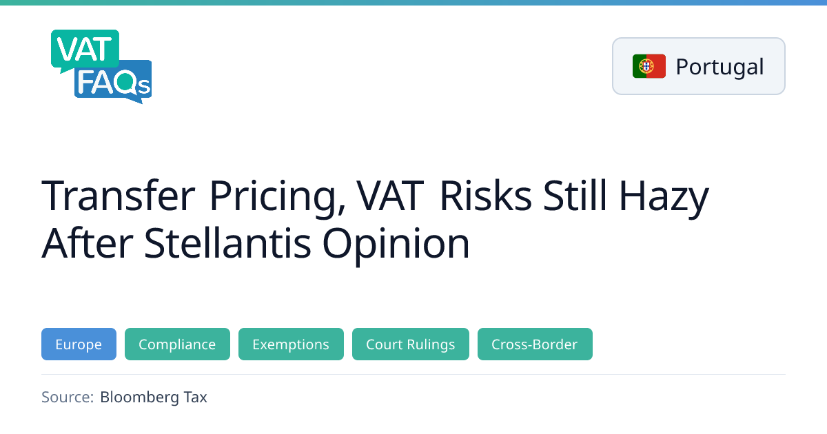 Bloomberg Tax’s commentary discusses how transfer pricing adjustments can create VAT exposure, citing recent ECJ cases and a Stellantis Portugal Advocate General opinion. It explains that adjustments tied to specific goods or services may be subject to VAT, while purely profit‑based adjustments may not. The article advises multinationals to conduct structured reviews and maintain documentation to mitigate risks.