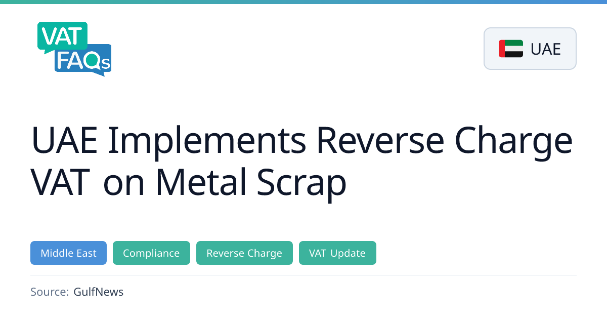 The UAE will shift VAT responsibility for scrap‑metal transactions from sellers to buyers on 14 January 2026. Under the new reverse‑charge mechanism, buyers must declare their purchase purpose and registration, while sellers must retain these declarations and note the reverse‑charge on invoices. The change aims to curb fraud and improve compliance in the scrap‑metal sector.