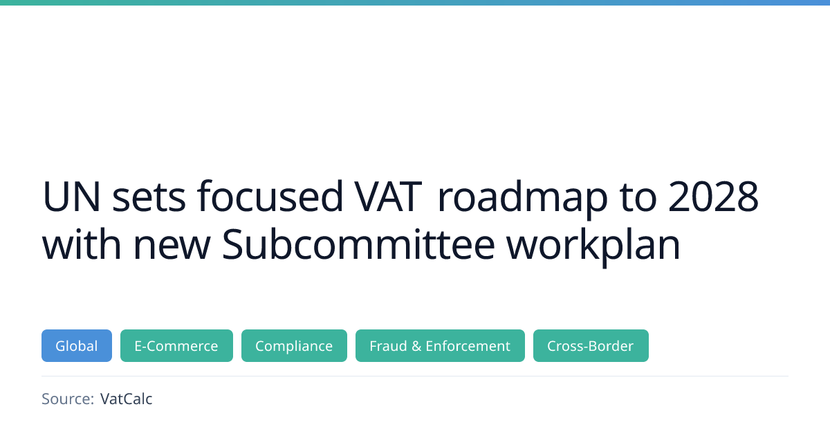 The United Nations Committee of Experts on International Cooperation in Tax Matters has announced a practical VAT agenda through 2028, establishing a Subcommittee on Indirect Taxes to produce guidance on execution gaps. The workplan covers five priority areas—digital economy VAT, fraud prevention and SME compliance, cross‑border dispute resolution, financial services/FinTech/crypto, and VAT regressivity—with draft outputs expected by October 2028. The initiative signals a global convergence in VAT thinking and increased scrutiny for tax authorities and businesses.