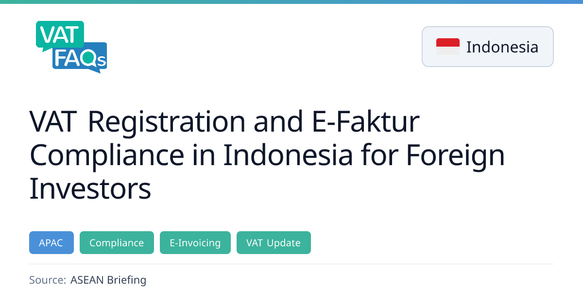 Foreign investors in Indonesia must register for VAT once their annual turnover exceeds IDR 4.8 billion (US$300,000). After registration, all VAT invoices must be issued and validated through the e‑Faktur system, with monthly reporting and reconciliation required. Non‑compliant invoices and inconsistencies between invoices, returns, and accounting records can trigger audits and penalties.