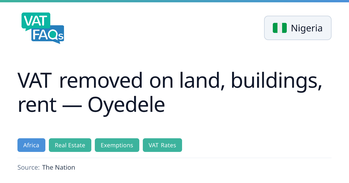 Nigeria’s Tax Act 2025 has fully exempted land, buildings and rent from Value Added Tax, aiming to lower housing costs and stimulate real‑estate investment. The law also reduces construction withholding tax to 2 % and allows mortgage interest on owner‑occupied homes to be deducted. Additional reliefs include rent relief up to ₦500,000 and various tax incentives for small businesses and real‑estate investors.