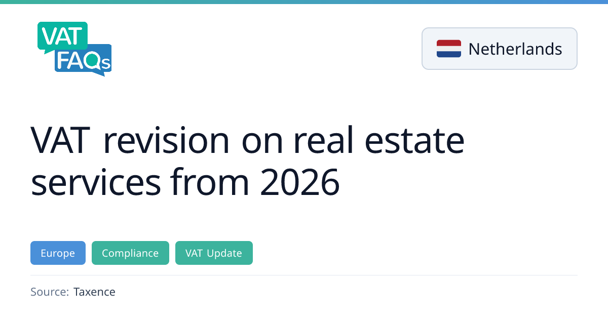 From 1 January 2026, the Netherlands extends its VAT revision regime to costly real estate services exceeding €30,000. The new rules introduce a five-year revision period for qualifying renovation and improvement services, requiring real estate owners and developers to reassess VAT positioning on ongoing projects.