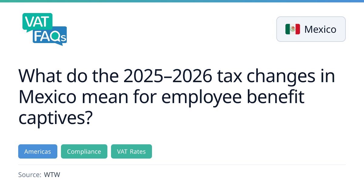 Mexico amended its Federal Revenue Law on 7 November 2025, removing insurers’ ability to recover 16% VAT on goods and services used in covered major medical treatments. The change is retroactive from 1 January 2025 and is expected to raise major medical costs by 10‑12%, potentially increasing loss ratios by 8‑12% and overall captive costs by over 20%.