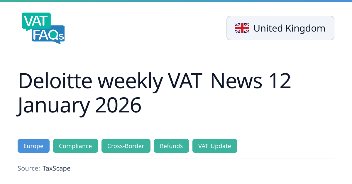 The Deloitte TaxScape weekly VAT news update covers a First‑tier Tribunal ruling that allows Littlewoods to recover full input tax on photography costs, the withdrawal of HMRC’s linked‑goods concession under the ESC, and significant changes to the EU Deforestation Regulation effective 30 December 2026 for large and medium businesses. It also notes the removal of printed materials from the EUDR scope and the publication of these changes in the Official Journal on 23 December 2025.